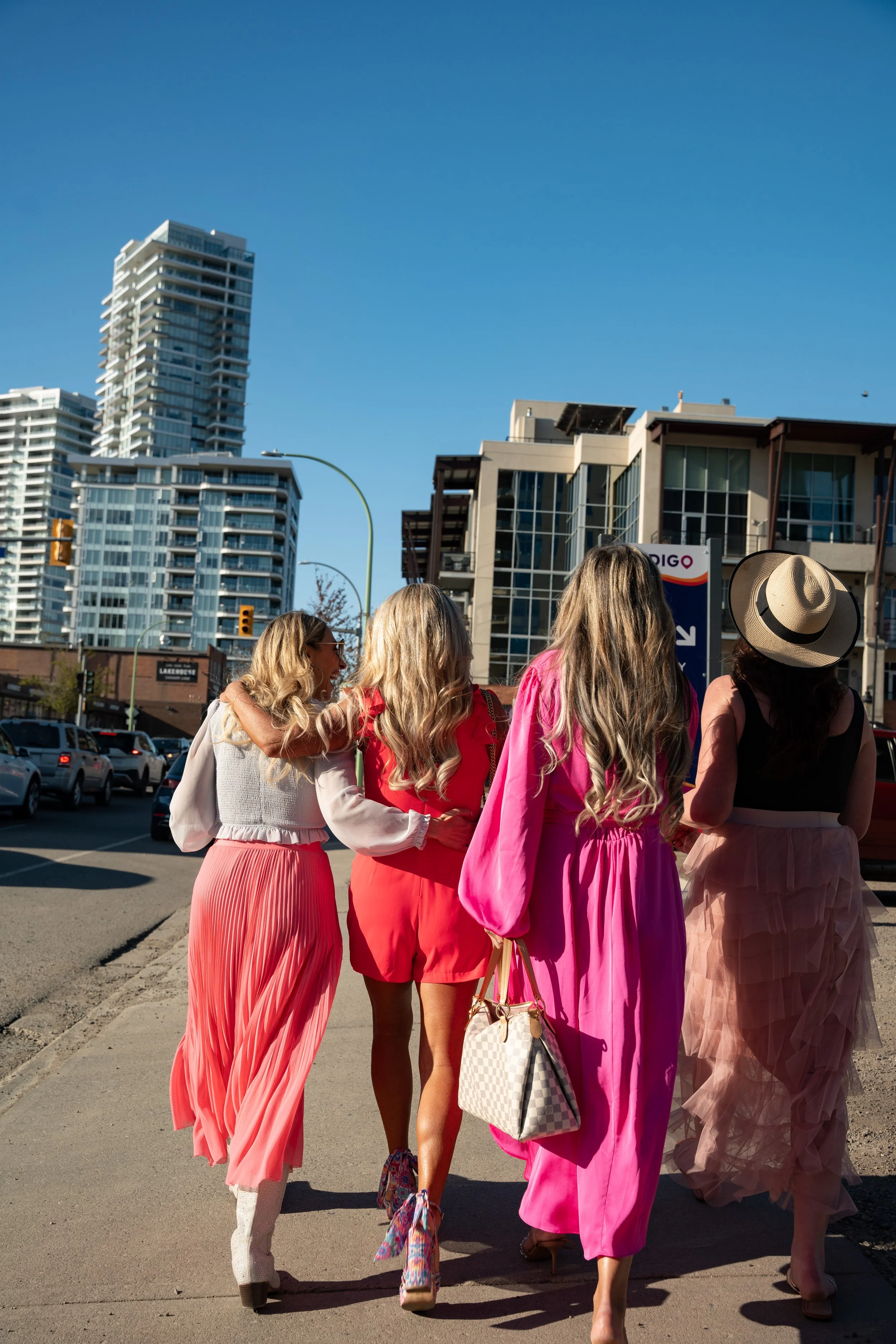 Then, in 2019 as Renée attended a conference in Palm Springs, packed with thousands of female creative entrepreneurs and influencers, she attended a fashion show put on by an influential designer. Within minutes of the show starting, a model came around the corner, and down the runway wearing the exact skirt in her vision ––THE bright pink skirt!